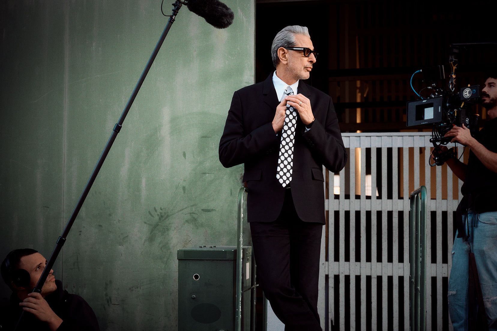 January 19, Boyle Heights. A winter morning in Los Angeles that feels quietly charged. The sun is low, the air crisp, the city holding its breath between the robotic fluctuations of traffic lights. On a side street, a studio hums with preparation. Inside, lights warm, cameras wait. Jeff Goldblum sits casually, holding court, riffing, thinking aloud. Somewhere between takes, Jérôme Mage joins him. The conversation begins, stops, resumes. Like jazz. Like film. Like the way this unique creative partnership has always worked.