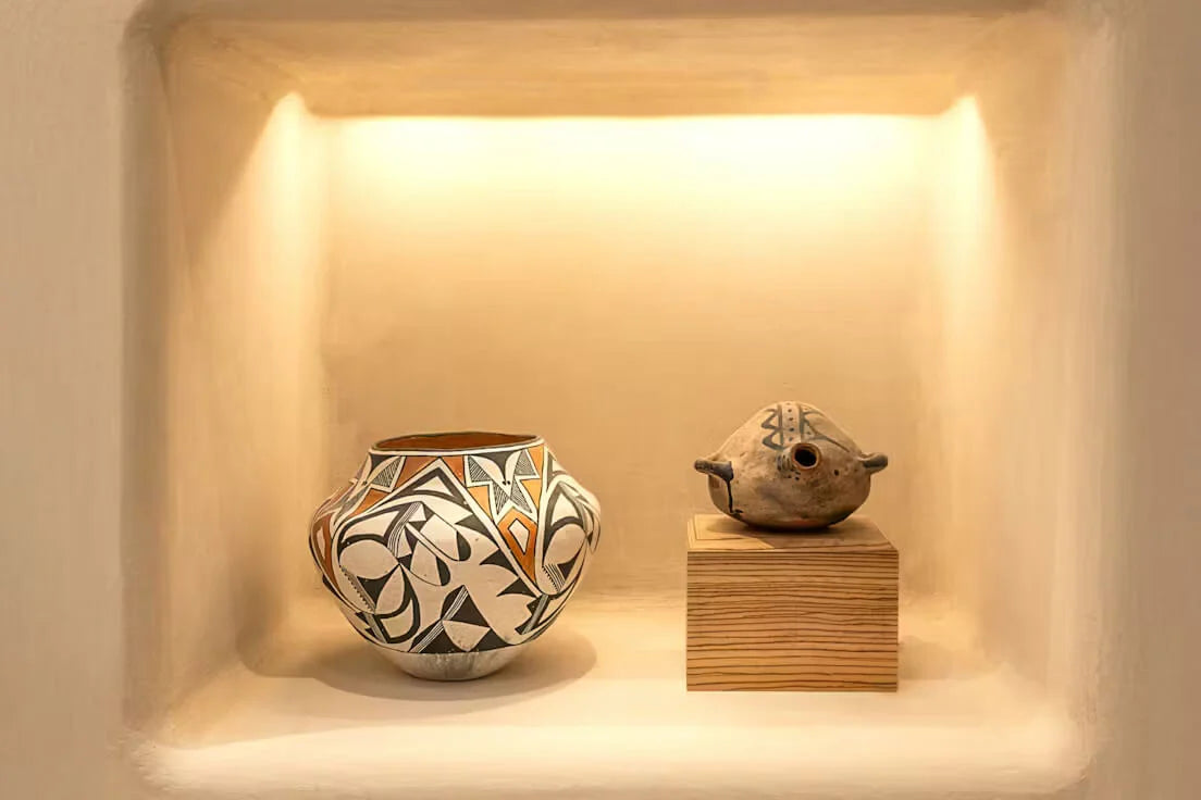 The Milan Gallery includes an exquisite assortment of over 15 authentic expressions of Navajo or Acoma pottery, each known for their unique pottery style and method.