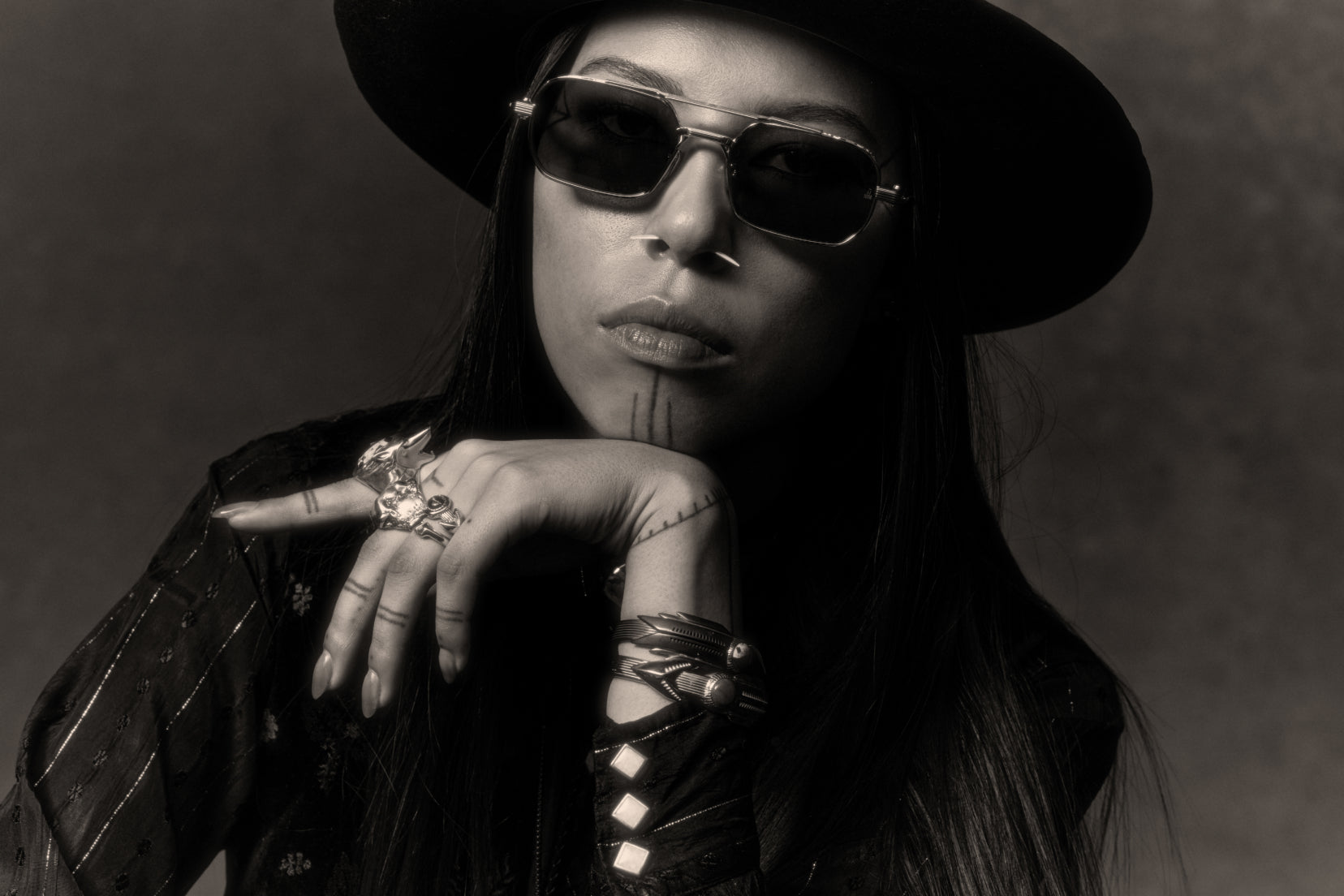 Her story is not just one of personal success but a narrative that encapsulates the resilience, beauty, and strength of Indigenous cultures. It is because of her profound work challenging stereotypes and inspiring younger generations that we have proudly collaborated with Chasinghorse on the newest campaign for JMM’s Last Frontier, a collection of limited-edition eyewear and jewelry shaped by an ongoing exploration of the American West and a commitment to supporting Indigenous peoples through partnership and philanthropy.