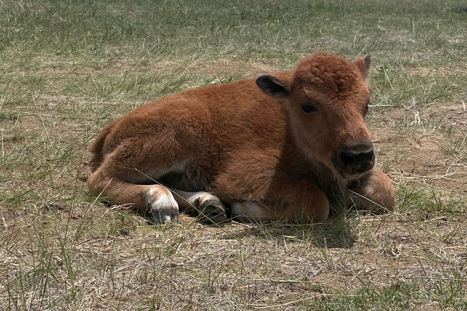 Adding to the compelling scene was a newborn colt named Sand Dune, born just a few days after Ruby Red. Sand Dune was also an orphan and was being nursed from a bottle until he became an adult. His head and three of his feet had touches of white against his reddish-brown coat, very similar to the coloring of Ruby Red. Baby Buffalo are often called Red Dogs for their red coats, wagging tails, and panting faces. Sand Dune also represents a big part of our work at WRTBI, as the Shoshone and Arapaho are horse peoples—we have a long and sacred history with our long-legged companions. My heart warmed at the sight of Ruby and Sand Dune together, often playing or in quiet contemplation next to each other.