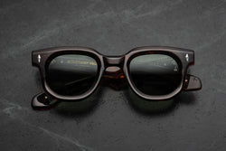Named for the Dinè (Navajo) phrase meaning Trees in a Circle—the settlement nearest the Four Corners Monument and home of Bo Joe’s grandparents—these spectacles honor place and tradition. Temples bear sterling silver ornaments with Lone Mountain turquoise inlays, secured in bold rectangular bezels and finely engraved with four sections of three lines, symbols of the San Juan, Animas, and La Plata rivers, sacred sources of water, sustenance, and cultural identity. Along the wirecore, designs echo the rug-weaving patterns for which T’iis Názbas is renowned, paired with tufa-stone texture detailing. At the temple tips, Morning Star medallions represent the four cardinal directions, guiding presence and protection.
