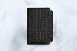 - Bordeaux embossed natural calfskin bordeaux lambskin leather lining silver palladium finished arrowhead corner adornment four card slots one folded bill pocket hand painted edges made in italy h 2.9 x l 4.2 in (7.5 x 10.5 cm)