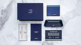 Limited-edition spectacles come in a custom monograph box set in blue canvas featuring creative and colors inspired by Senna’s iconic helmet design, and foil-stamped embellishments in white. Box includes a custom hardshell eyewear case and soft dust bag; commemorative cleaning cloth; leather eyewear straps; a letterpress authenticity card with collection notes and handwritten limited-edition number; and an exclusive bi-lingual booklet featuring photography and original commentary.