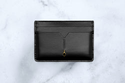 This expression of our limited-edition card holder is handcrafted from Satin Calfskin in Black or Bordeaux Empire, complemented by an elegant arrowhead adornment plated in 24k Gold or Silver Palladium and embellished with a hand-painted Black or Bordeaux Empire epoxy inlay; lined with Nappa Lambskin in our signature Bordeaux Empire color; finished with hand-painted edges, and foil-stamped brand mark. Made wisely and slow, for those who act fast too often stumble.